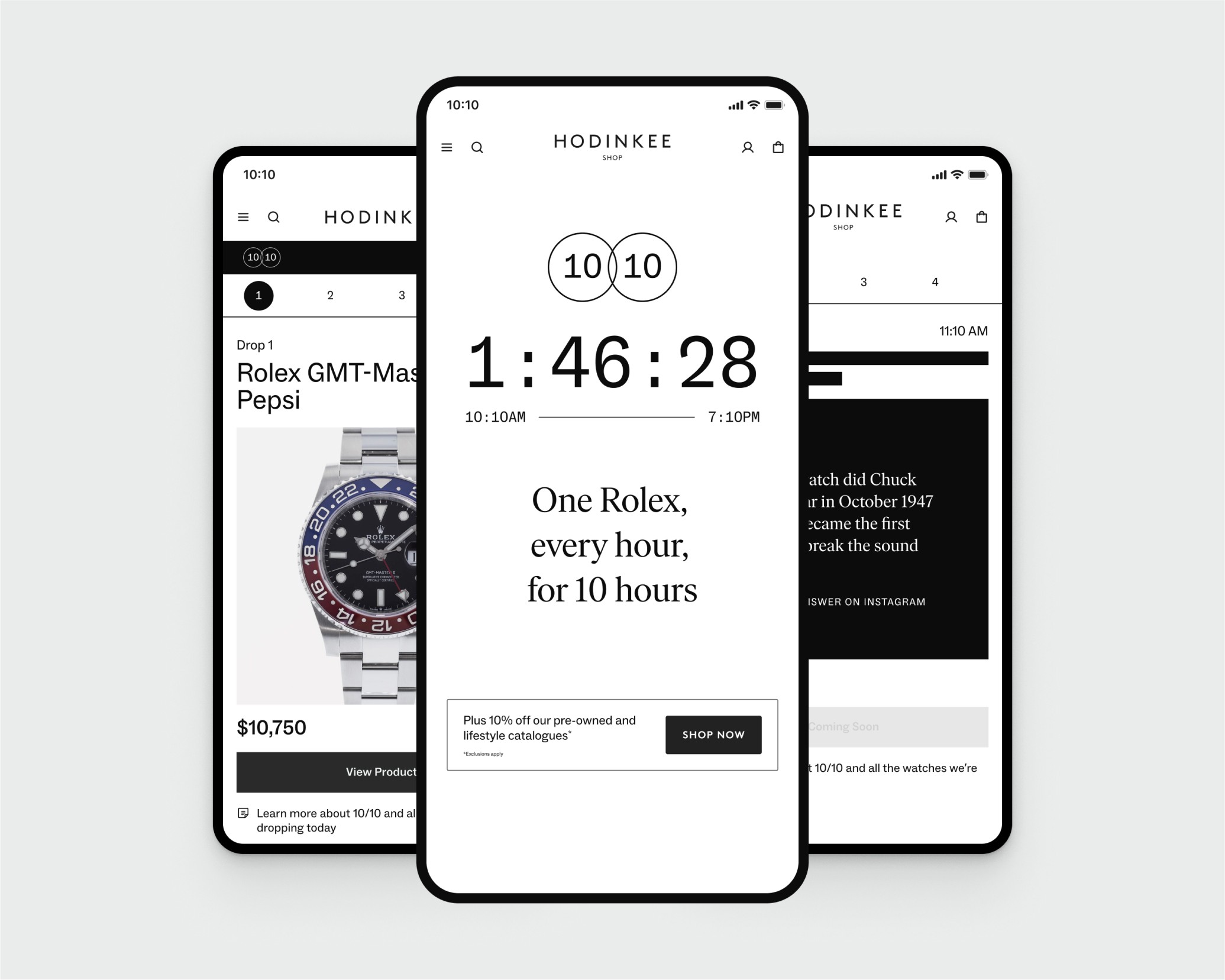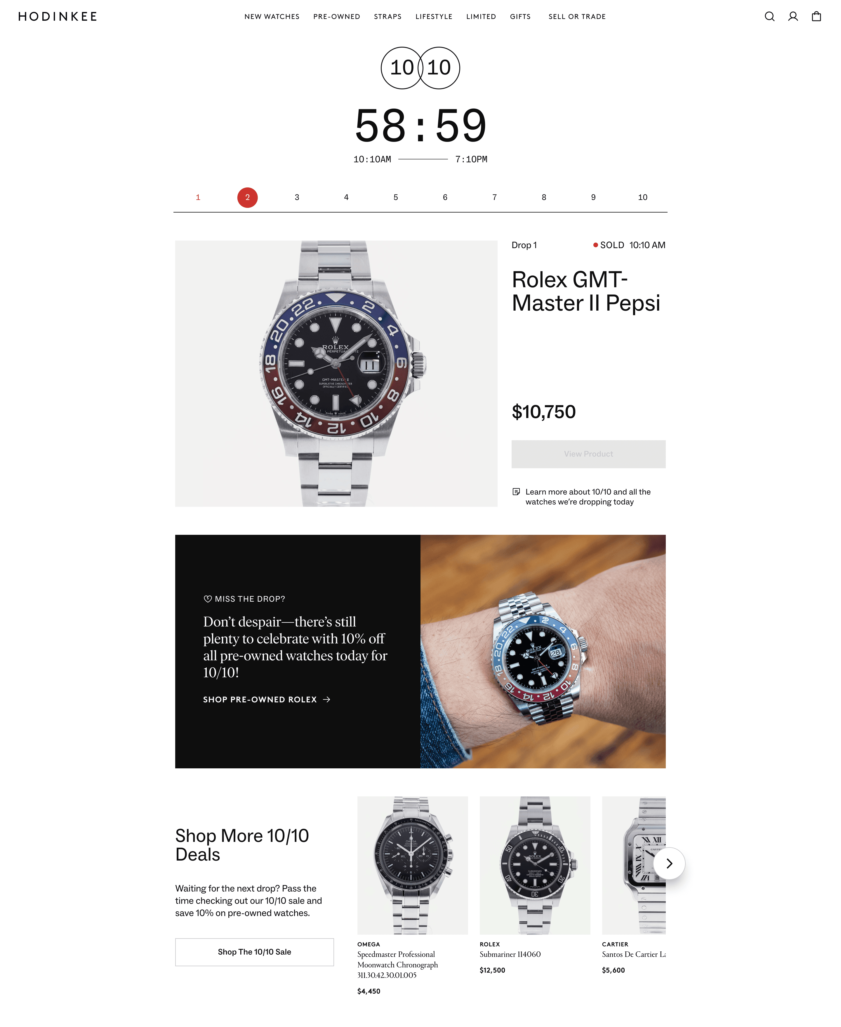 For the inaugural 10/10, we offered up 10 Rolex watches at MSRP, as well as 10% off all pre-owned watches across the site