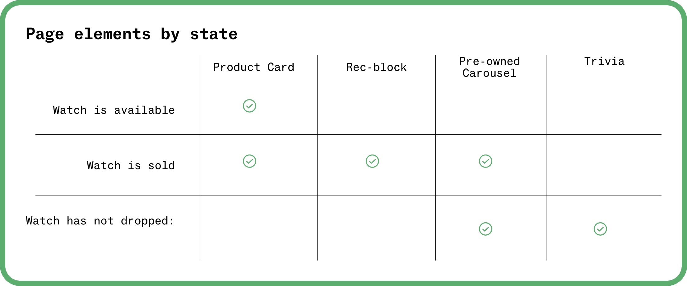 When a watch dropped, the page was built to refresh, display a link to the product page, and take the user to the page where they could then buy the watch.